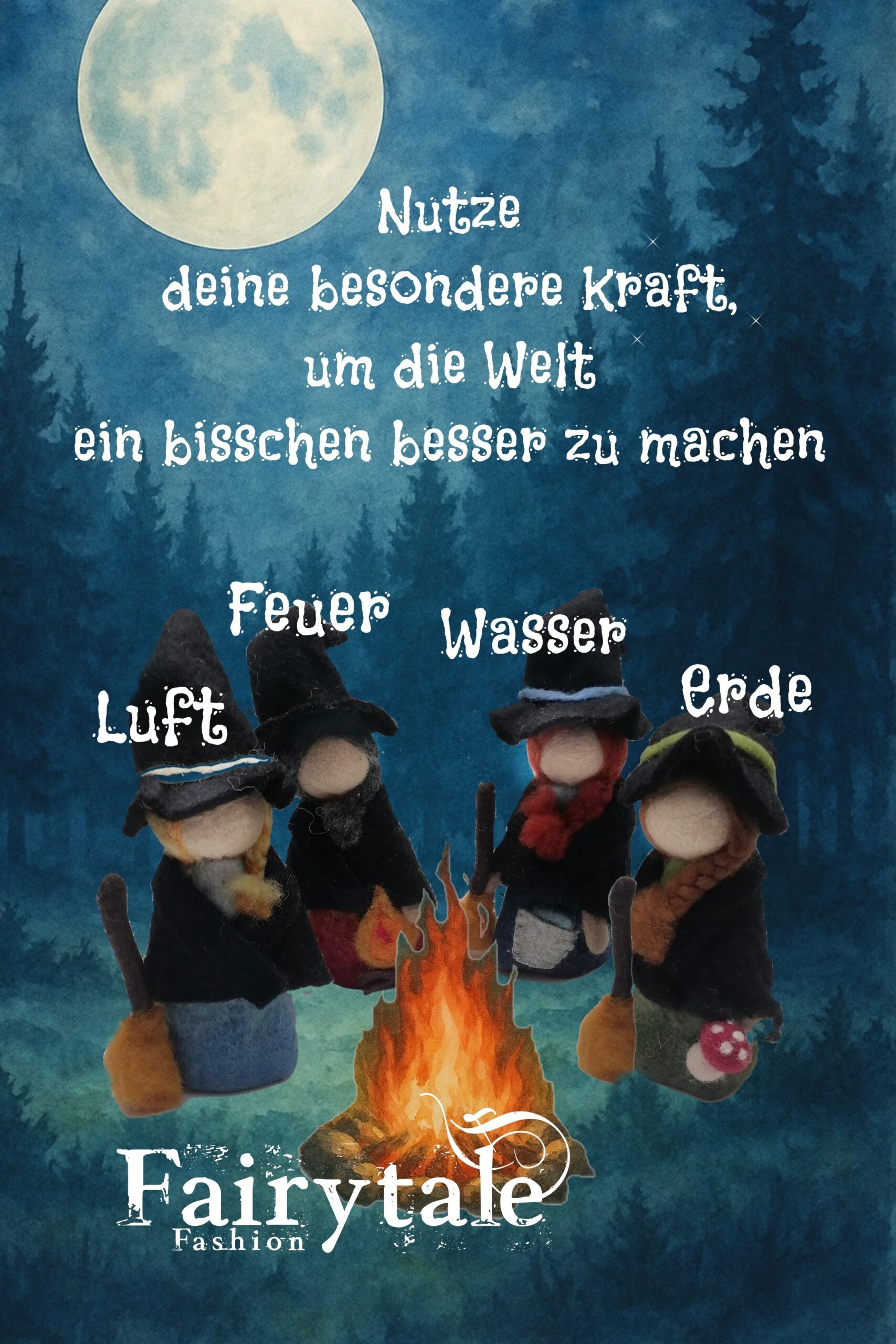 Wasser, Erde , Feuer, Luft oder von allem ein wenig, egal- fairbreite deinen Zauber! Die Deko-Hexe, die ganz in ihrem Element ist.