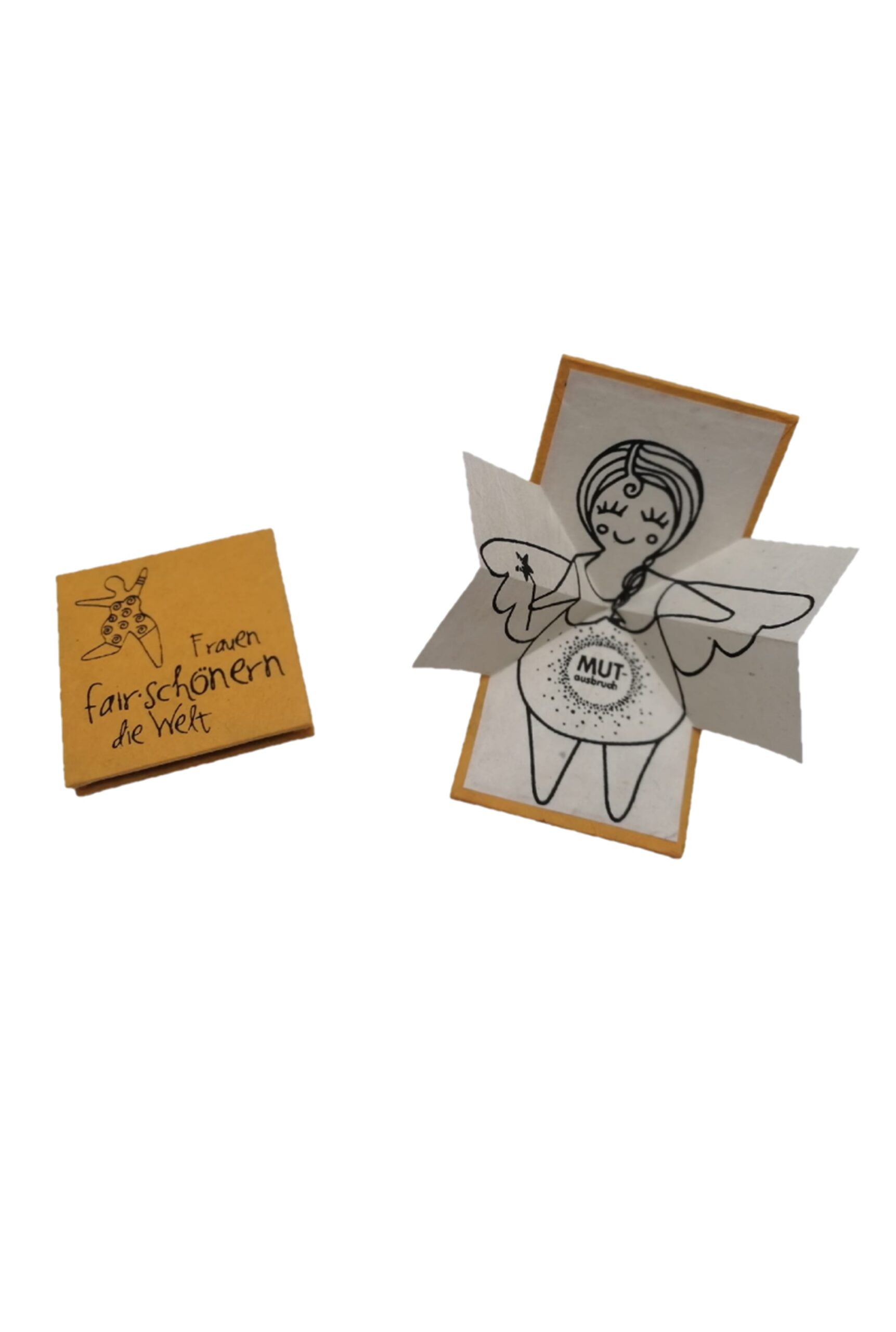 Du öffnest die Karte und das Engelchen öffnet seine Flügerl. Das keine Geschenk, das mit Sicherheit den “Jö, ist das lieb!”-Moment auslöst!